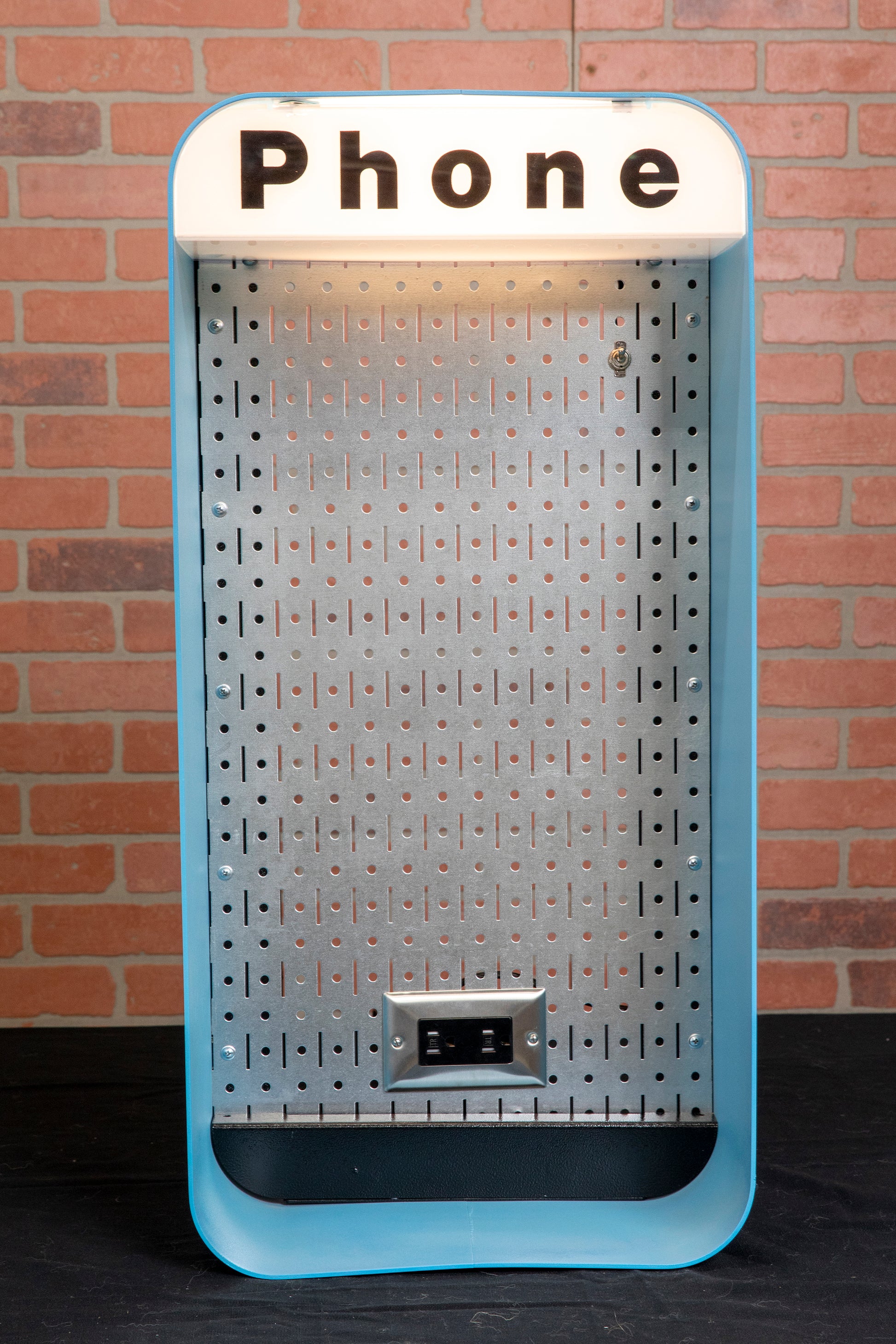 This one is pretty obvious. It's an old style phone booth [officially it's called a phone encloser] turned into a curio display case [possibly for your collectable action figures] with an added outlet to charge your phone. Adjustable shelves and it lights up. Duh