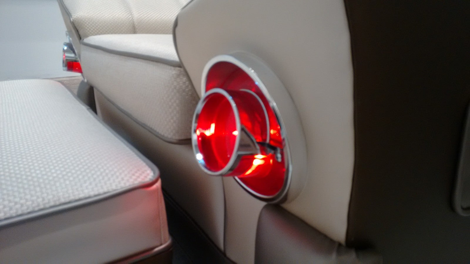 Introducing a one-of-a-kind custom upholstered chair that is sure to turn heads and start conversations. This unique piece of furniture features the iconic taillights from a 1964 Impala car, seamlessly integrated into its design.
